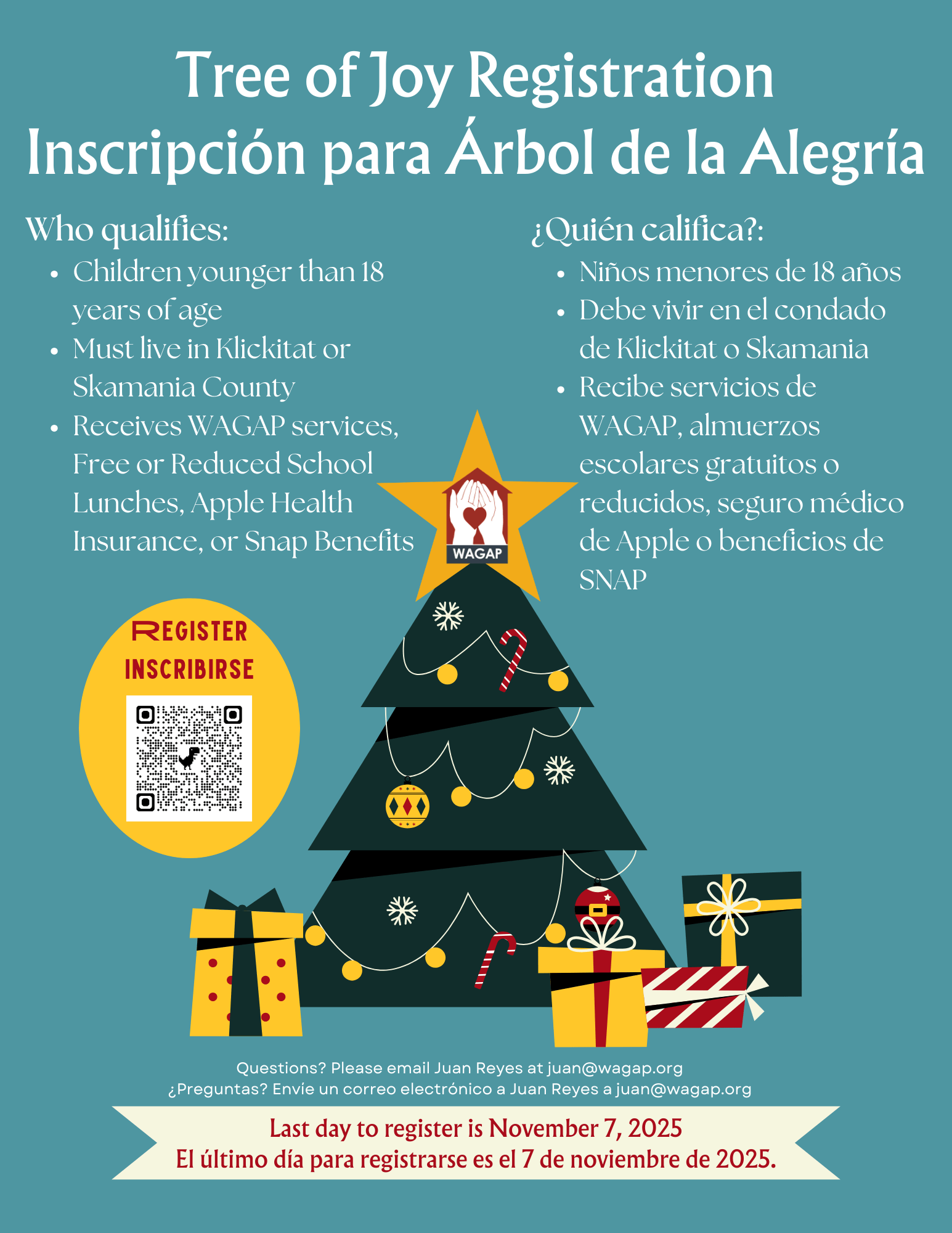 400 children are expected to benefit from the 2025 Tree of Joy. Donors are asked to register by November 14 so they can receive wish lists before the Thanksgiving holiday and have a couple of weeks to shop. For donors who wish to participate but are limited in their capacity, financial contributions are welcome, and WAGAP staff will do the shopping and wrapping.