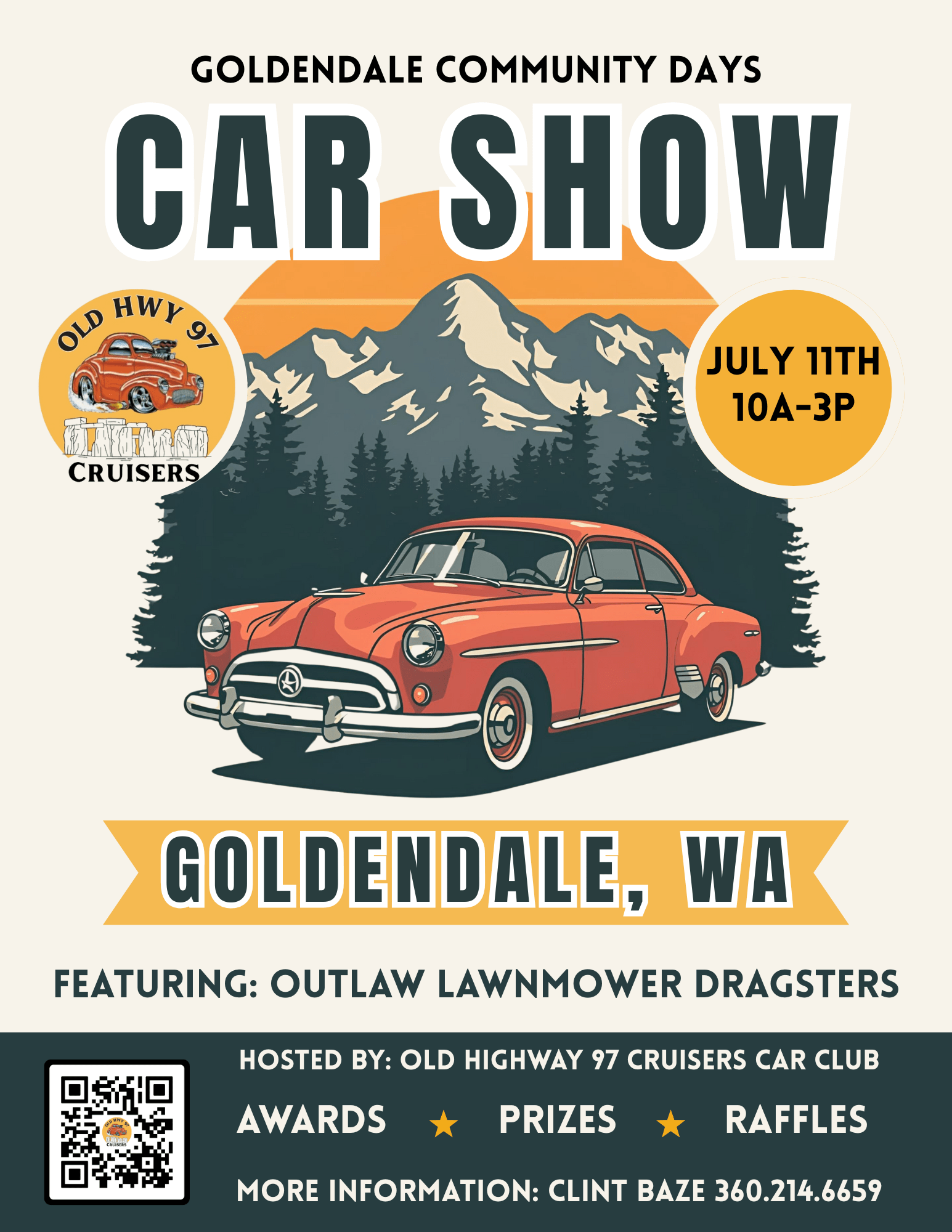 Join us July 11, 10:00 AM–3:00 PM in Goldendale, WA, where rows of polished rides, engine rumbles, and curbside conversations create the perfect Community Days street scene. This year’s special attraction is the Outlaw Lawnmower Dragsters, bringing fast, loud, crowd-pleasing exhibition runs.